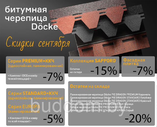 Интернет-магазин www.BUDDOM.BY доставляет на дом кровельные материалы ДЕКЕ / DOCKE высокого качества.
